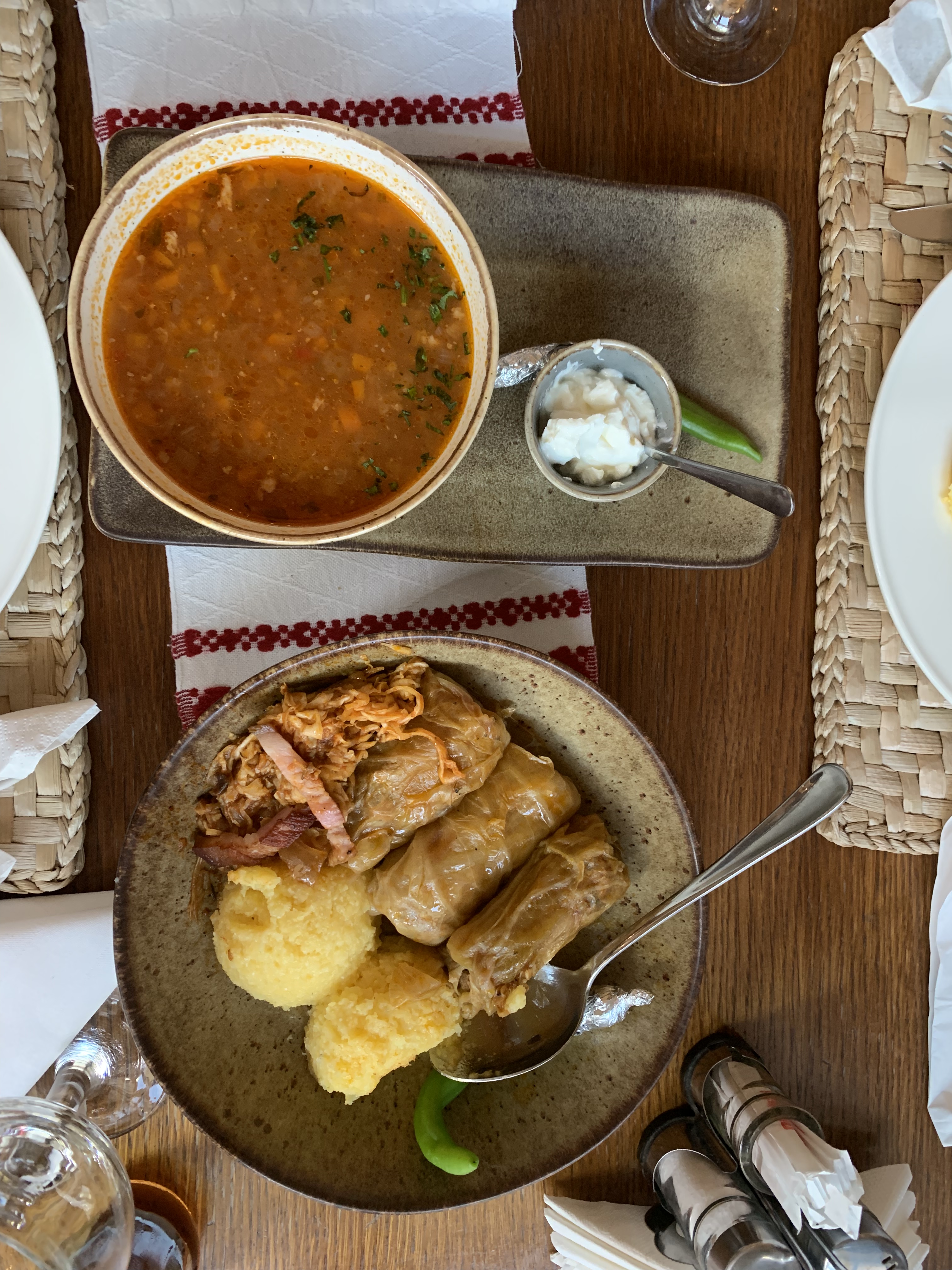 - Traditional Romanian food has some crossover with my favorite Ukrainian dishes. When my friend and I went out, we had cabbage rolls, but a very different style than the holubtsi my family makes: these were fatty, with meat filling and sour, from pickled cabbage leaves.