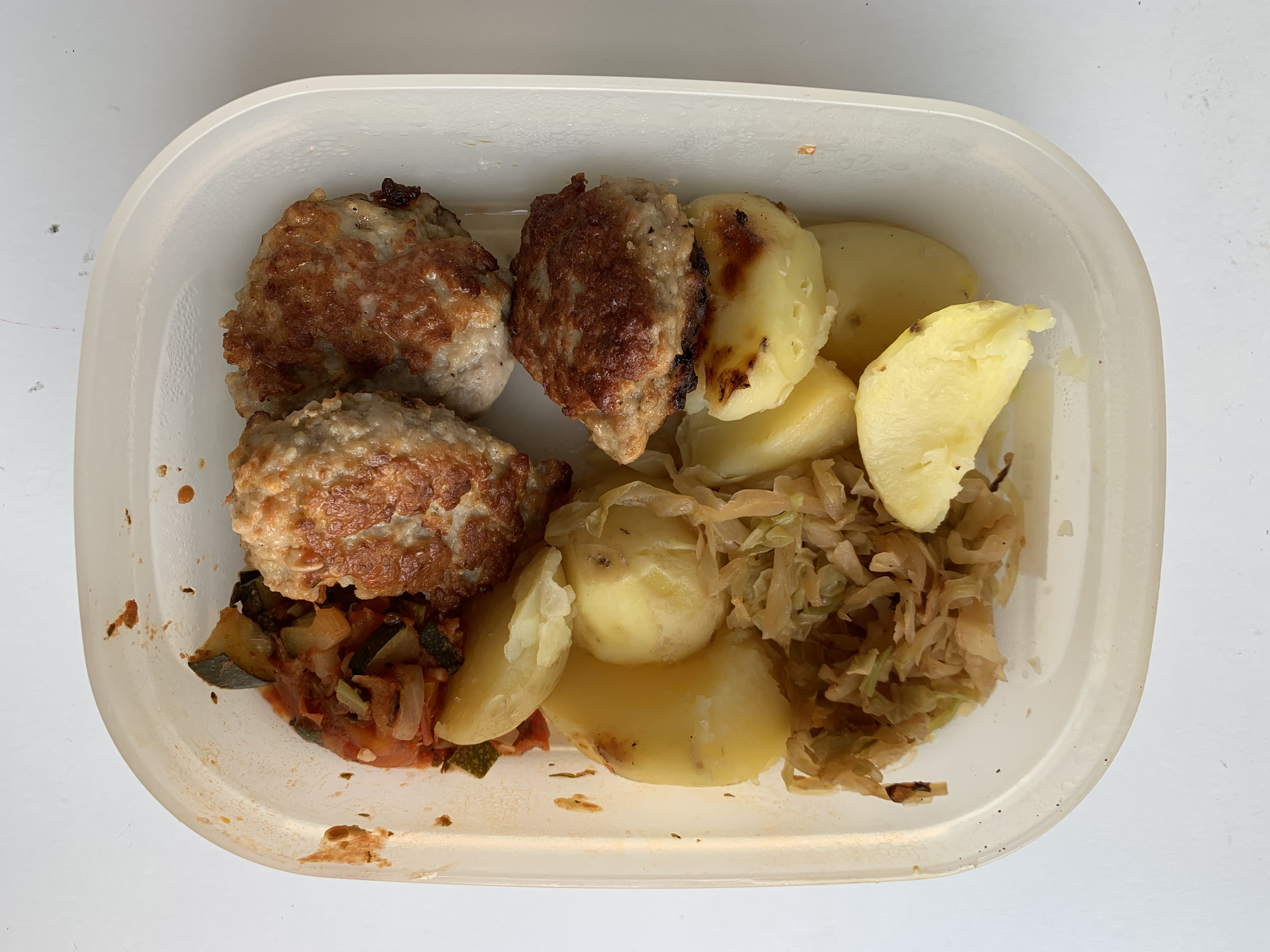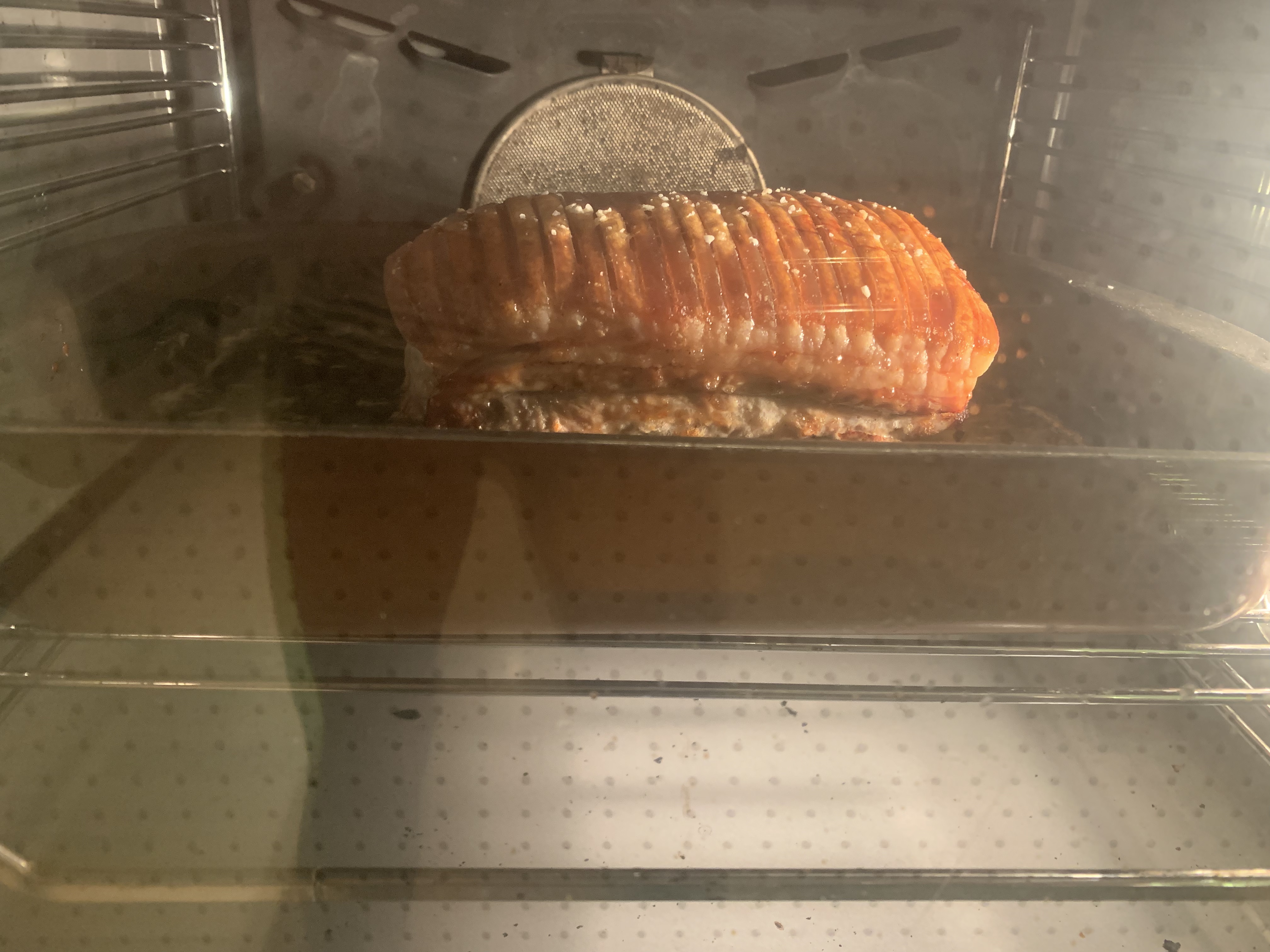 - Enjoying an early Christmas dinner: Crispy pork belly, boiled potatoes, caramelized potatoes and potato chips.