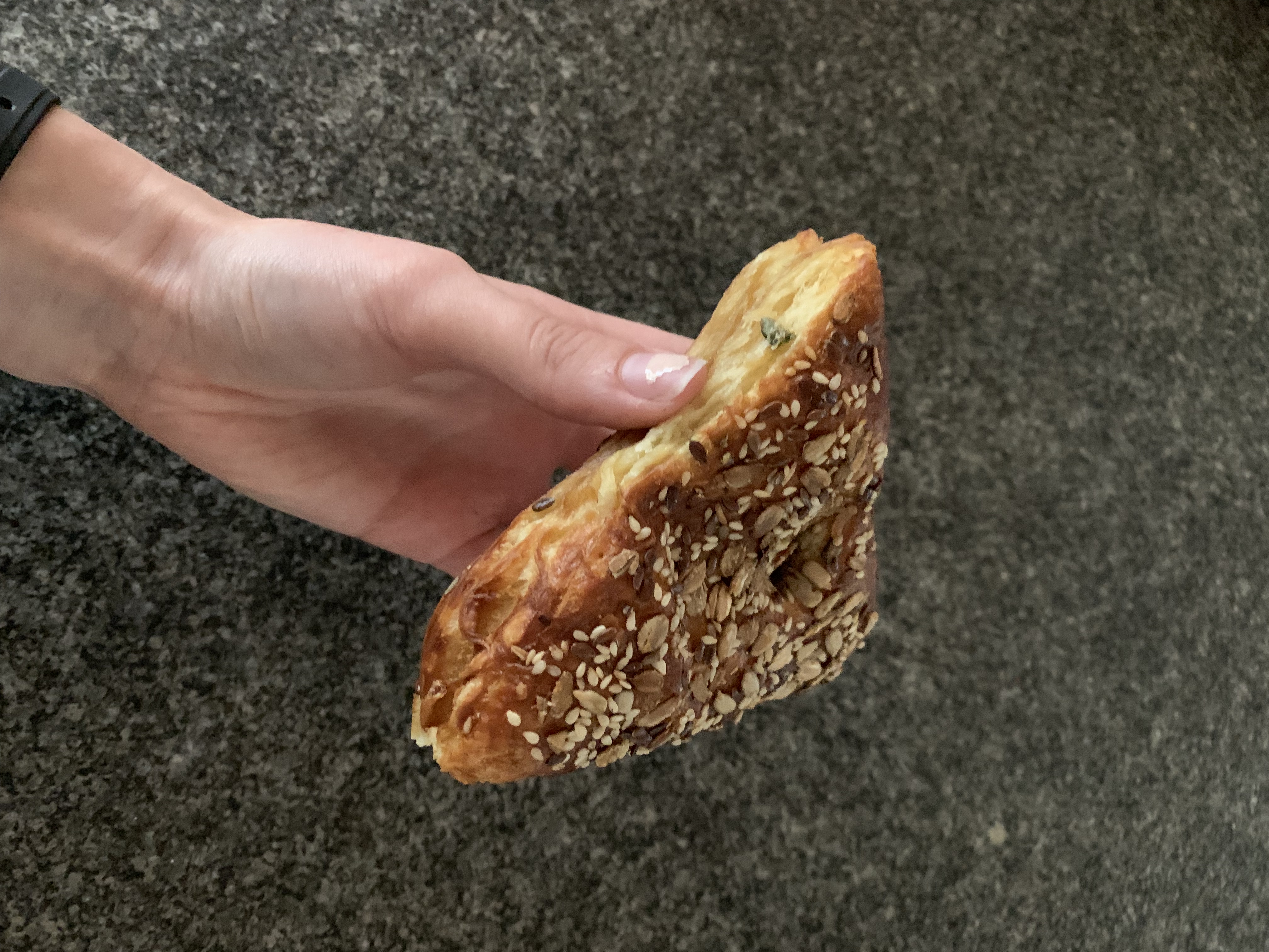 - Enjoying Danish pastry on the weekend. My family buys different ones each time so I can eat my way through all the pastries. My favorite right now is this buttery puff pastry triangle that is covered in seeds, and tastes like a savory bagel.