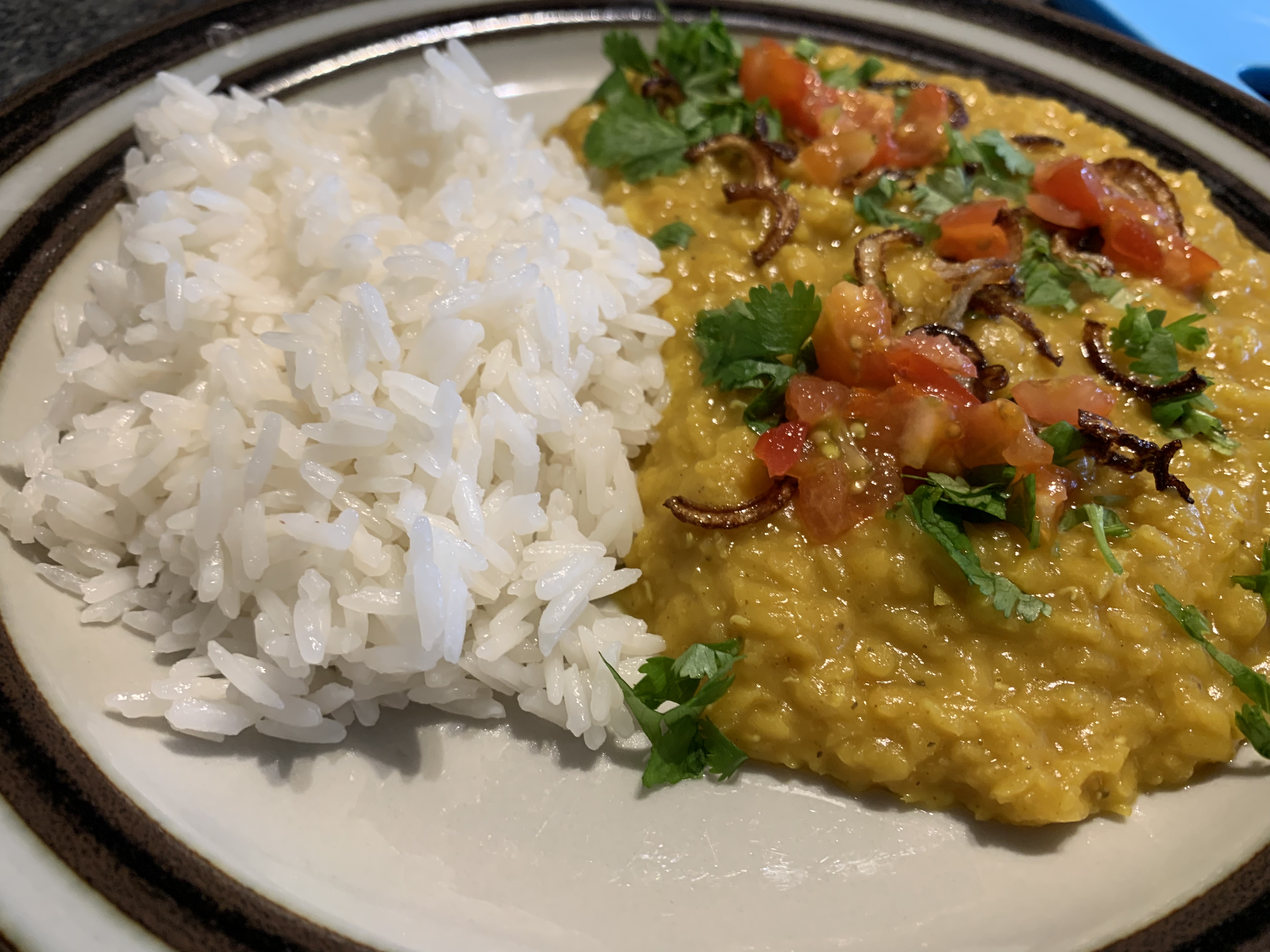 - Making myself a big batch of daal with cilantro and rice.